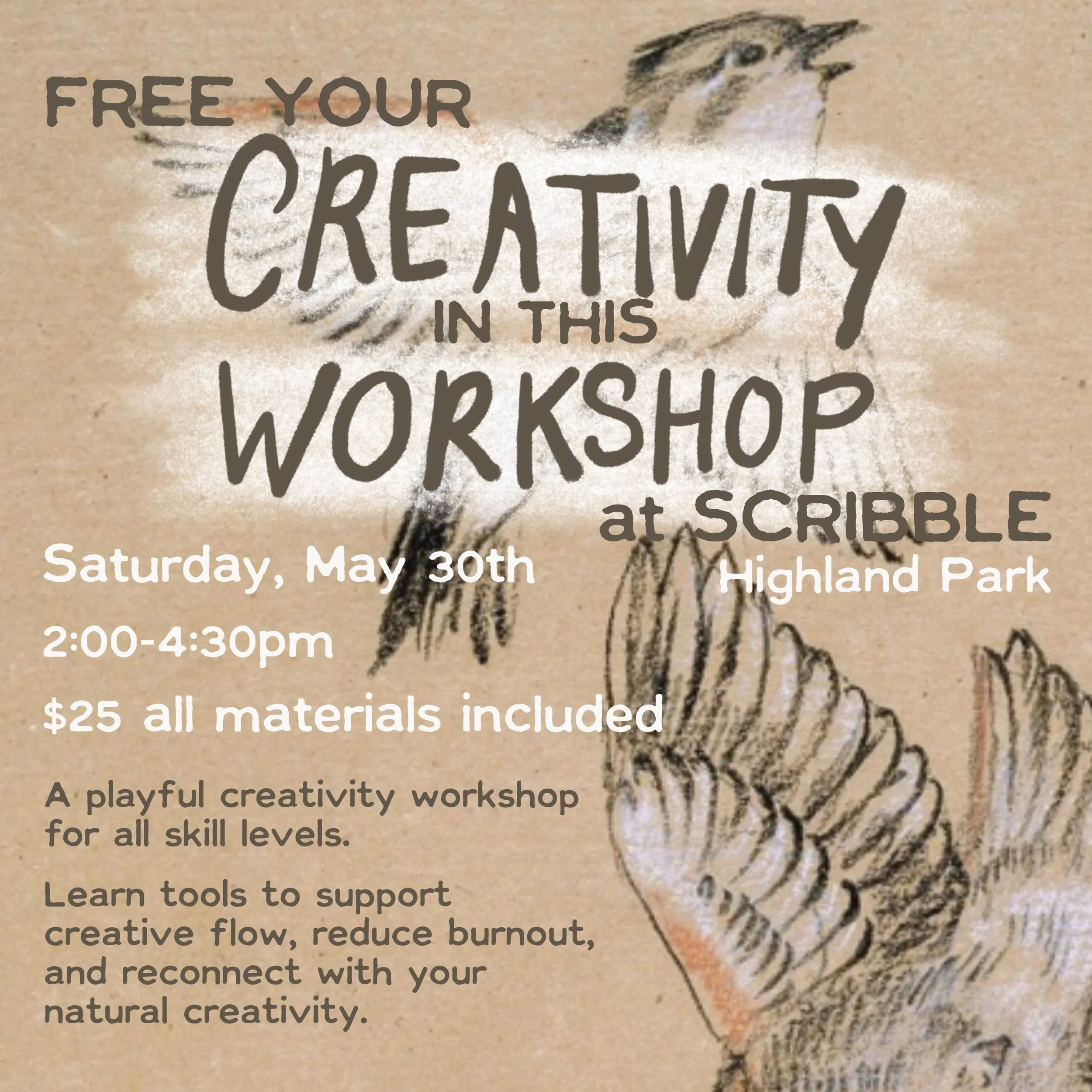 A playful creativity workshop for all skill levels. Learn tools to access creative flow, reduce burnout, and reconnect with your natural creativity.